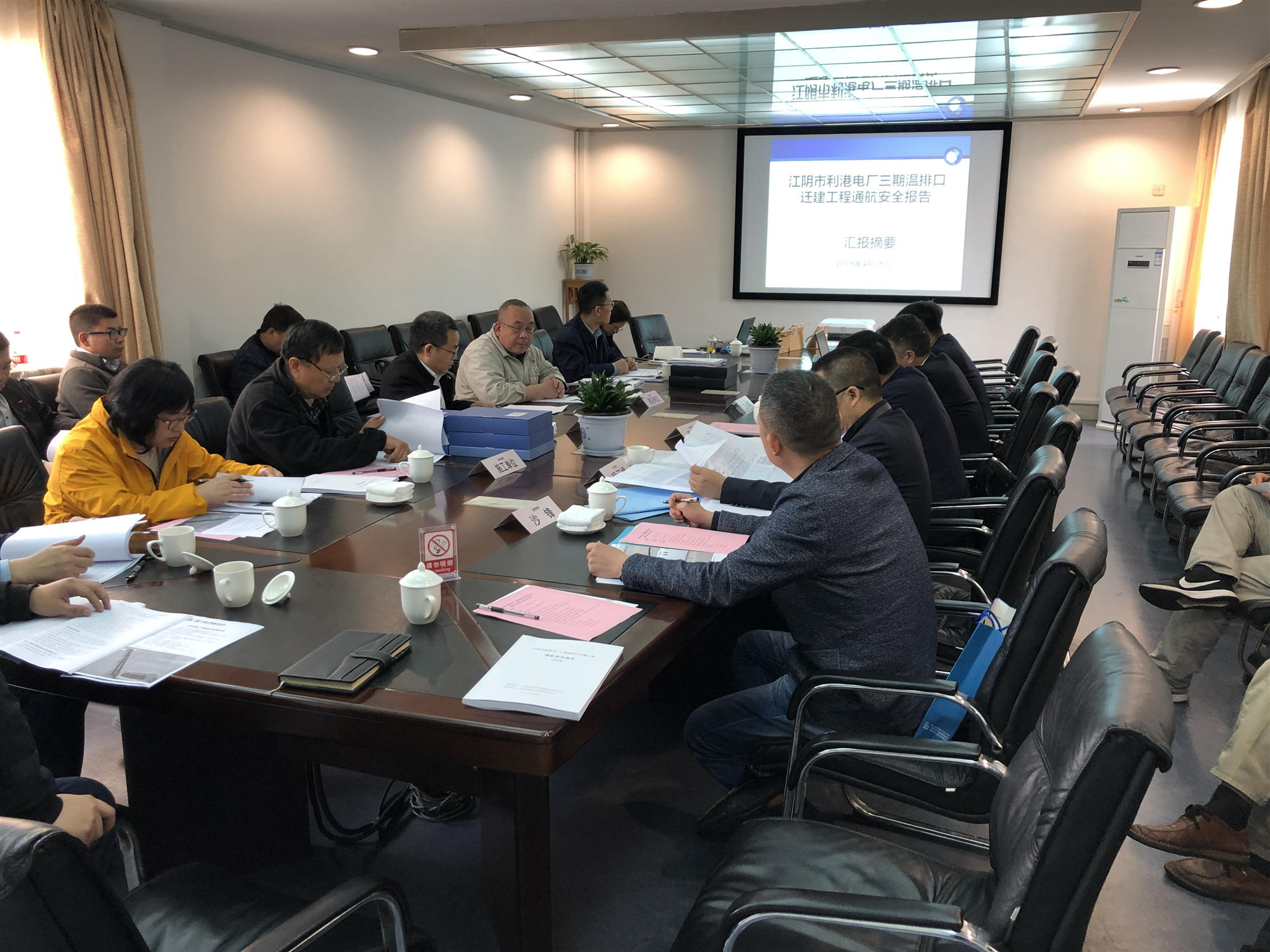 2019年4月28日,江陰海事局在江陰組織召開(kāi)了江陰市利港電廠三期溫排口遷建工程通航核查會(huì)議。參加會(huì)議的有江陰海事局、江陰利港發(fā)電股份有限公司(業(yè)主單位)、中設(shè)設(shè)計(jì)集團(tuán)股份有限公司(設(shè)計(jì)單位)、中海工程建設(shè)總局有限公司(施工單位)、上海海科工程咨詢有限公司(監(jiān)理單位)、江蘇中信安全環(huán)境科技有限公司(報(bào)告編制單位)代表以及特邀專家。